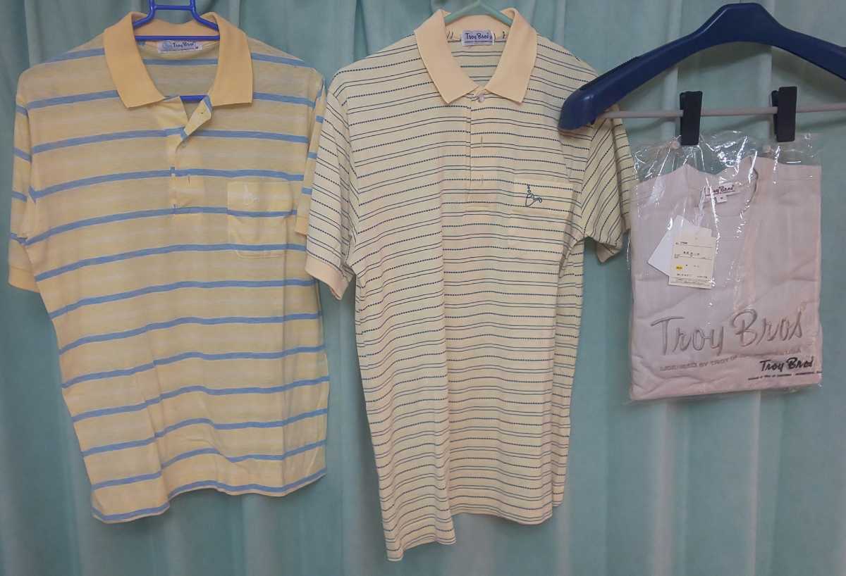 > ジャンク扱い 3着セット(未使用品有) Troy Bros トロイボーンズ 半袖シャツ トレーナー スウェット 全てM シミ有 部屋着・作業着などに