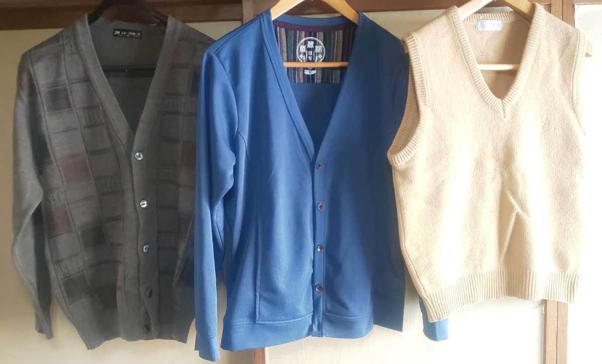 - 古着3着セット ジャックブラウン 美濃屋 トロイ カーディガン ニットベスト M 立体ニット ブルー ヴィンテージ レトロ