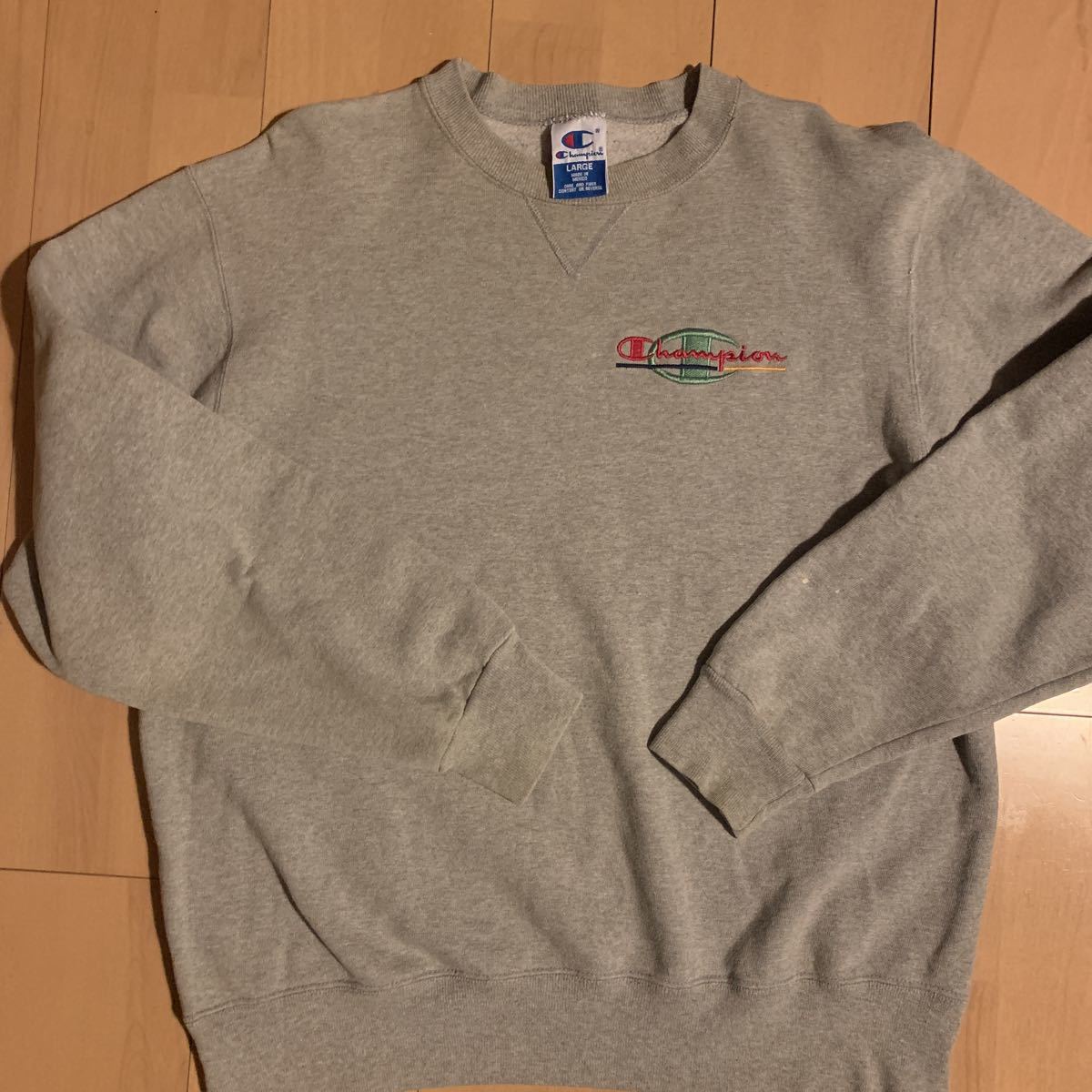 > 90s【Champion】チャンピオン スウェット トレーナー 前V 刺繍タグ メキシコ製 Lサイズ ビンテージ グレー 珍品ロゴ