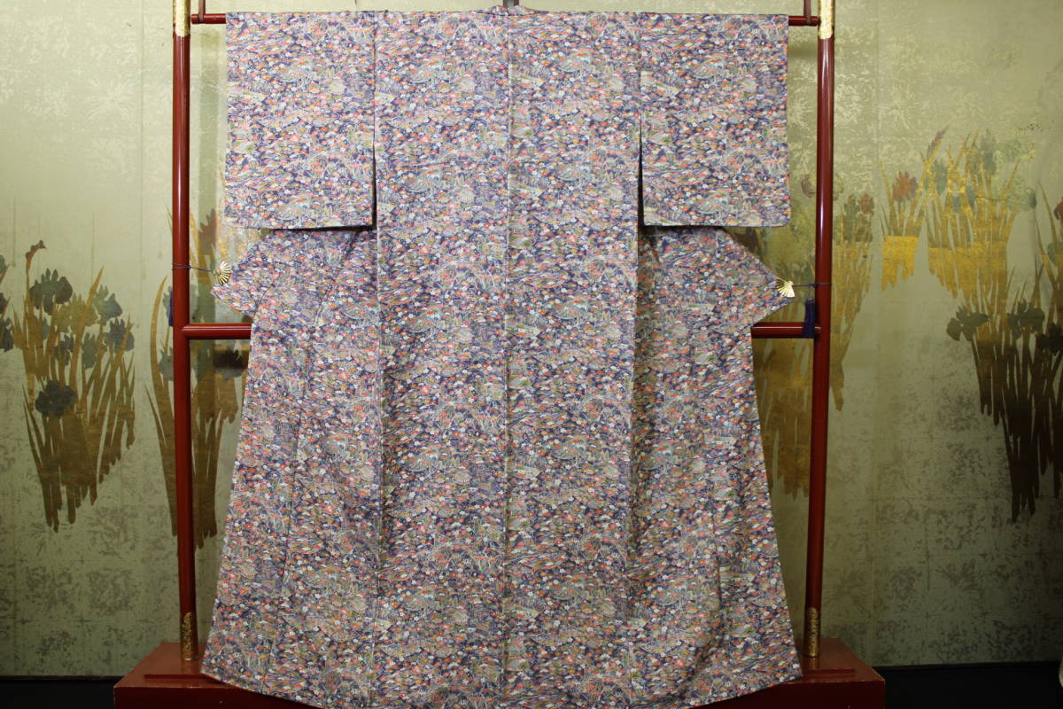 > きもの今昔4814 小紋のきもの 広衿袷手縫い仕立て 加賀友禅 加賀染め附下小紋 躾け糸付き未使用品 身丈159cm