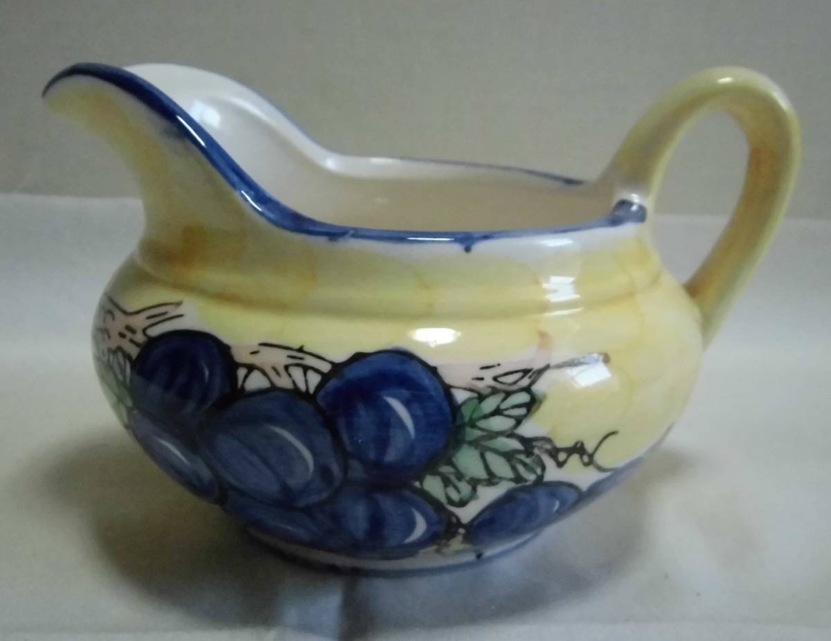 > 片口 外国製? 取っ手付 持ち手 色絵 器 小鉢 酒器 つゆ入れ 注ぎ口 陶器 工芸品 レトロ