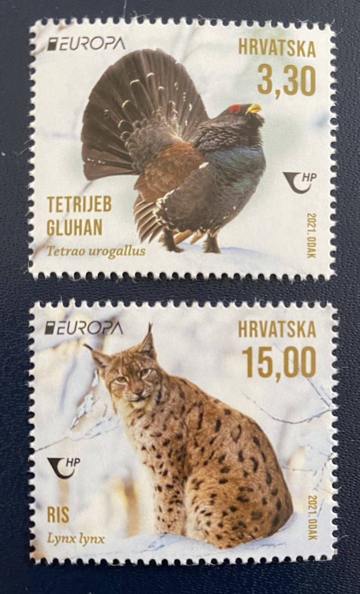 - クロアチア ヨーロッパ切手 Europe CEPT 絶滅危惧種 オオヤマネコ ヨーロッパオオライチョウ 2種完 未使用 NH