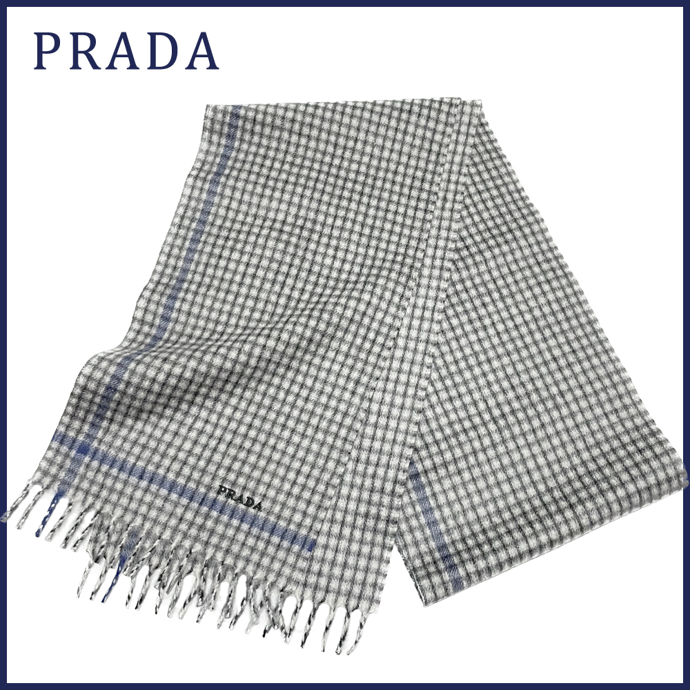 - 新品プラダPRADAメンズ カシミア100%フリンジマフラー グレーチェック柄★