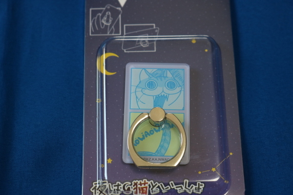 - 夜は猫といっしょ スマートフォンリング 四角 キュルガ 新品 未使用