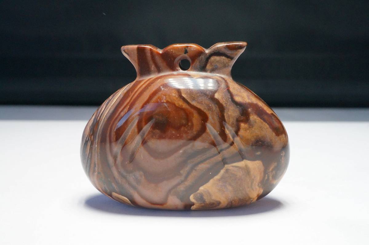 - 【即決特別価格!早い者勝ちです】希少30年前の未使用在庫!上質瑪瑙・めのう・メノウ彫刻カービング「巾着」ルース色合い模様や彫が美しい