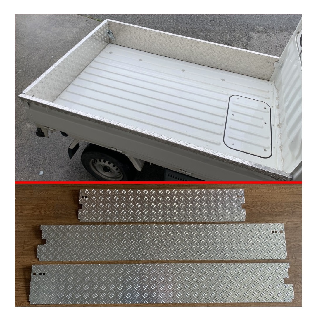 - ■軽トラ ピクシストラック S211U(ゲートチェーン用ブラケット付き車両用) 荷台あおりインナーカバー アルミ縞板 3点SET
