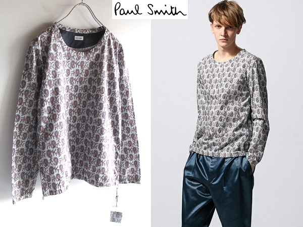 > 新品 コレクション使用 Paul Smith ポールスミス メインライン サイドジップ ペイズリー総柄 ノーカラー スモッグシャツ S ライトブルー