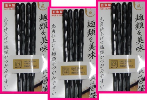 > 【送料無料:箸:6膳:手になじむお箸 日本製】 ★麺を美味しく食べる箸 耐熱 乱彫型 乱彫 彫 亀甲 乱堀彫★食器洗浄機 食洗機★黒 23cm