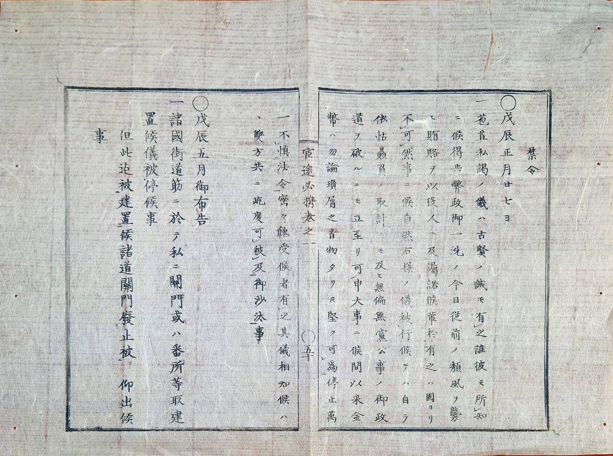 - f23030545〇明治布告布達 官途必携 禁令 賄賂撤廃 諸国街道 私の関門或いは番所停止 明治4年〇和本古書古文書