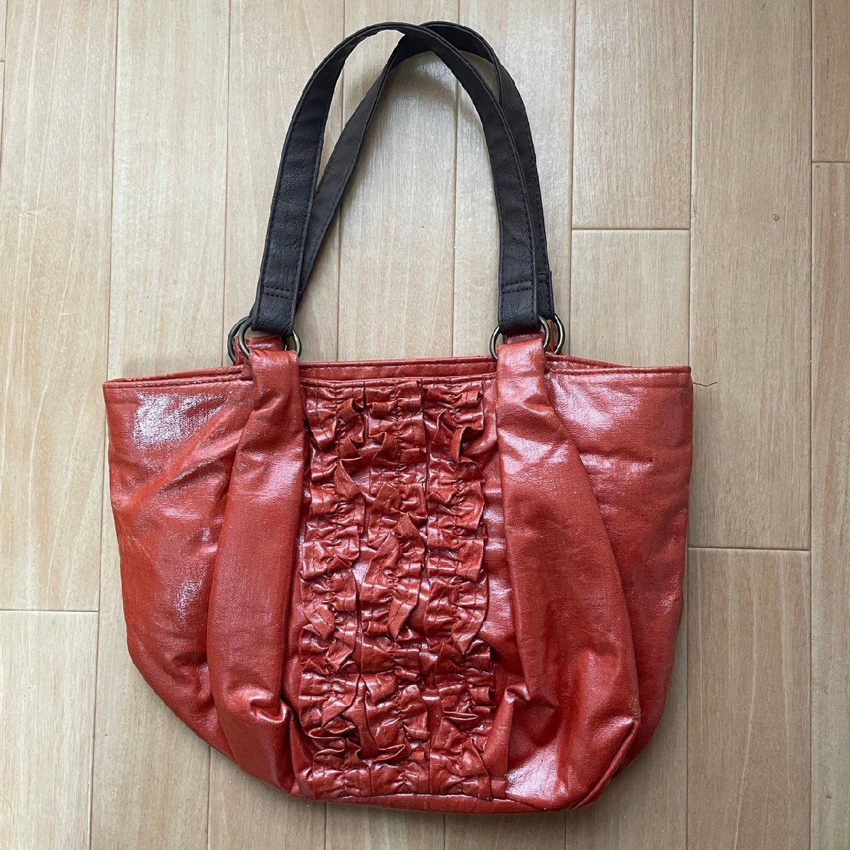 - トートバッグ オレンジ THE EMPORIUM ジエンポリアム フリル 合成皮革