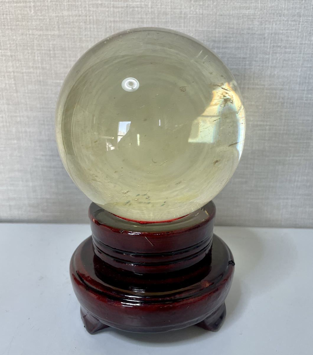 - 溶錬水晶 丸玉 スフィア 006 パワーストーン 置物インテリア グリーン 台座付 直径約9cm以上 クリスタル