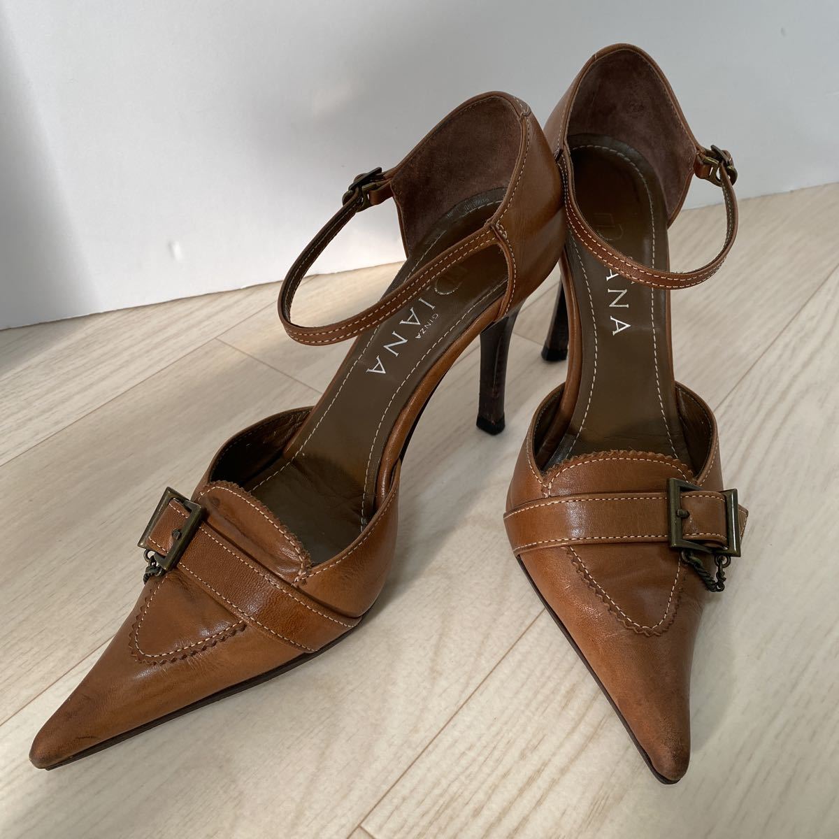 > ダイアナ DIANA パンプス 茶 ブラウン 22 cm 銀座 通勤 カジュアル ビジネス ストラップ パンプス レザー レディース