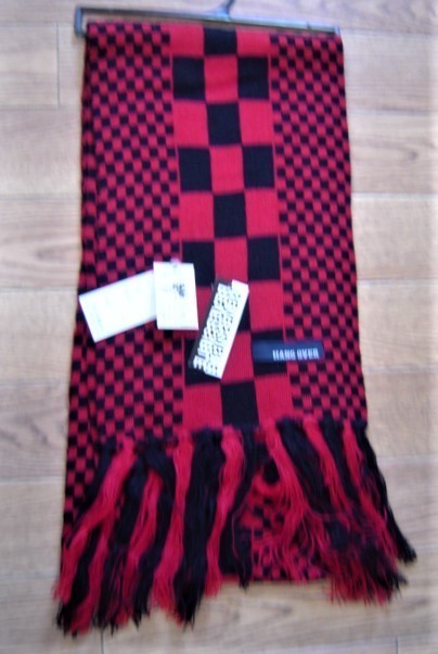 特価セール アクリル ニット ブロックチェック リバーシブル マフラー リトルモーランド 男女兼用 黒赤 幅21.5cm 長さ160cm拍卖