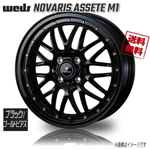 ホイール新品 4本セット WEDS NOVARIS ASSETE M1 ブラック/ゴールドピアス 16インチ 4H100 5J+45 φ73 業販4本購入で送料無料