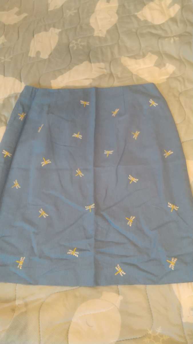 - タルボット TALBOTS ブルー系 トンボ刺繍入り スカート~ サイズ10 未使用