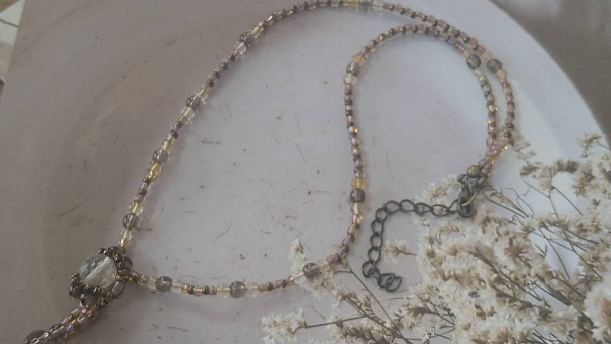 - ニュアンスカラー ビーズ ネックレス オレンジ・クリア・ブラウン系カラー