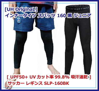 - [UH OriginaL] インナータイツ スパッツ 160 黒 ジュニア [ UPF50+ UVカット率99.8% 吸汗速乾 ] サッカー レギンス SLP-160BK