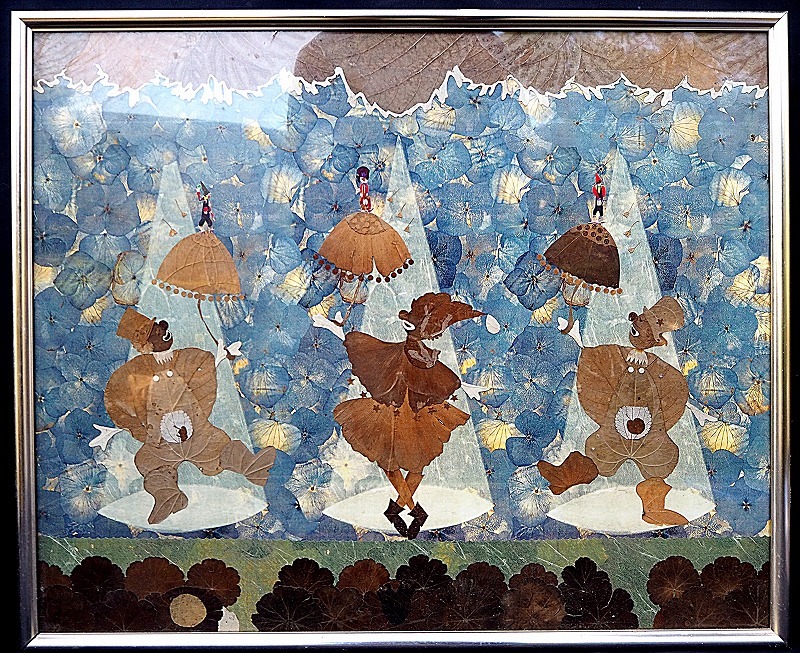 - 葉っぱ絵 貼り絵 落ち葉絵 「ピエロのダンス」 F12 落ち葉アート 葉画家 作者 東京都 竹井啓