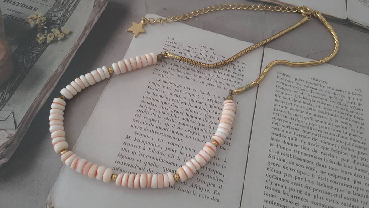 - 訳あり リゾート感 沖縄天然貝×ゴールドカラーチェーン ネックレス