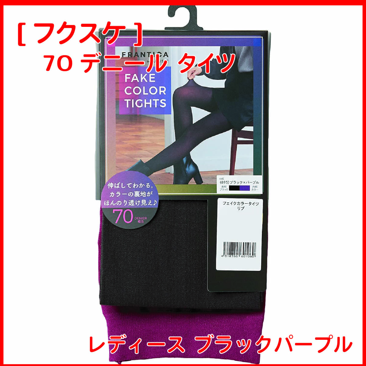 - [フクスケ] 【FRANTICA】フェイクカラー リブ 70デニール タイツ 1足組 レディース ブラックパープル ML(ヒップ:85-98cm)