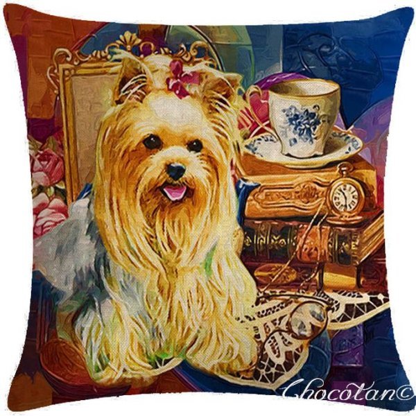 - 【送料無料】ヨークシャーテリア イラスト ⑯ クッションカバー 【新品】