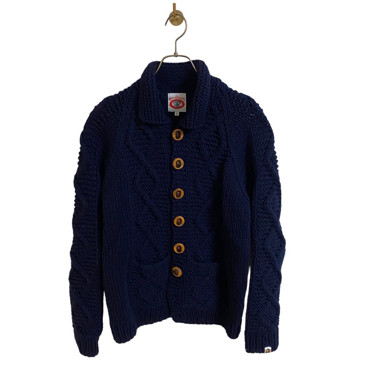 - 【A BATHING APE アランニット ウール100% メンズS アベイシングエイプ 紺 極美品 サンプル品 カウチンセーター フィッシャーマン 】