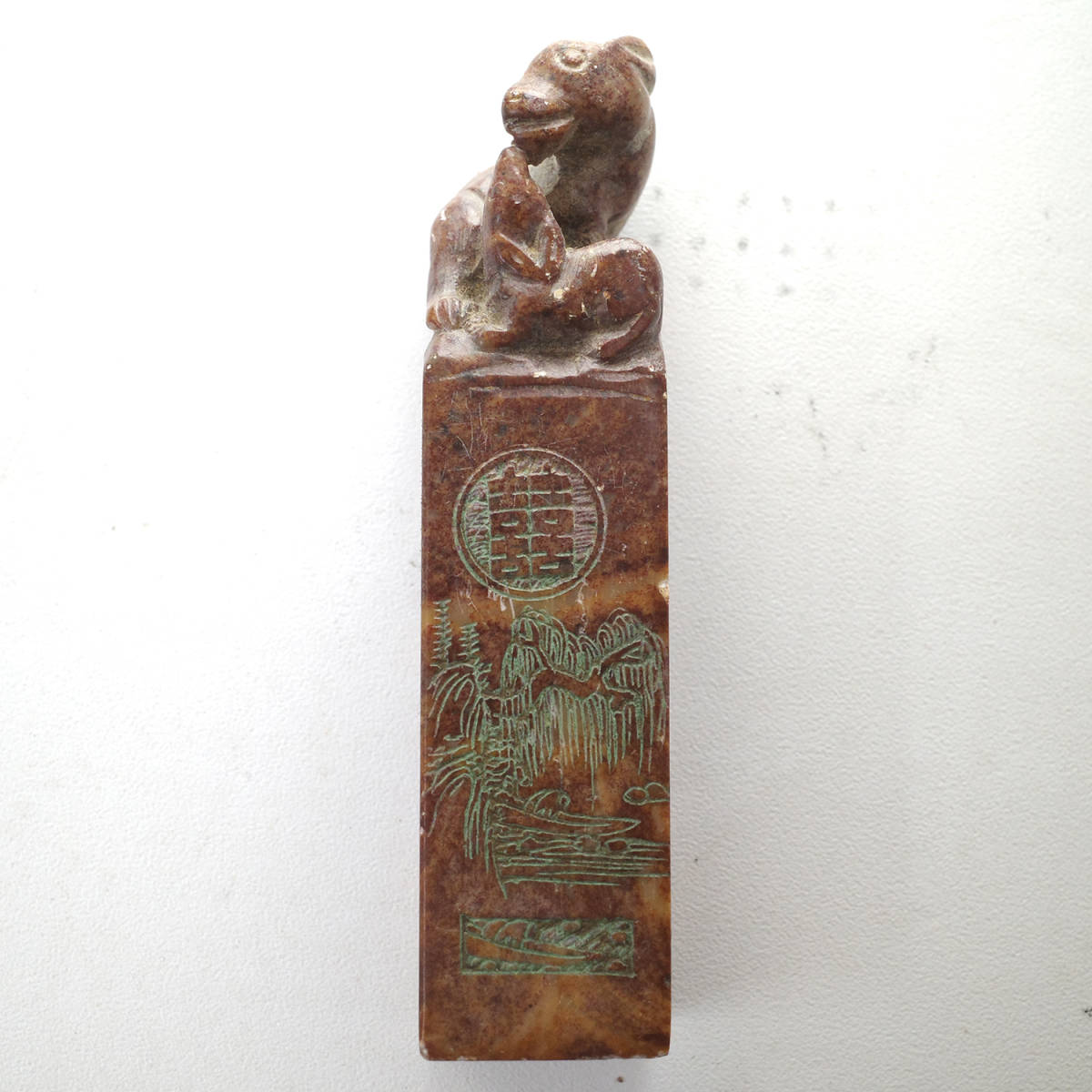 - refle【未彫刻】篆刻 篆刻用 石 印石 落款 天然石? 石印 印材 材質不明 未彫刻 狛犬? 14mm角 [①]