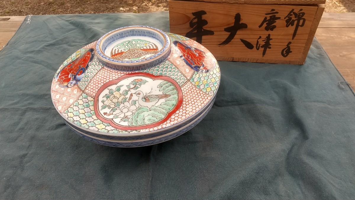- 唐津焼 錦手大平 木箱 推定年代 明治大正期