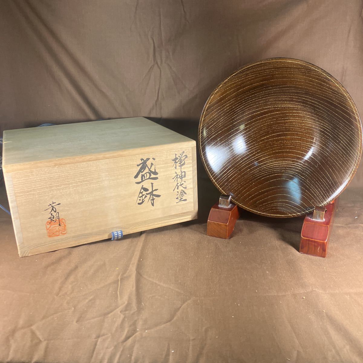 - 福田芳朗 欅神代塗 盛鉢 菓子鉢 木製漆器 共箱 共布 木目の神! 888