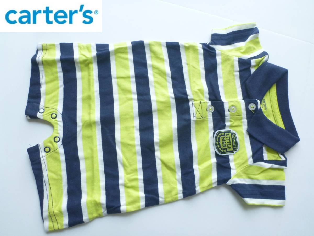 > 新品 carter's カーターズ ★紺×白×黄色 半袖 ショートオール ボーダー 3m 50