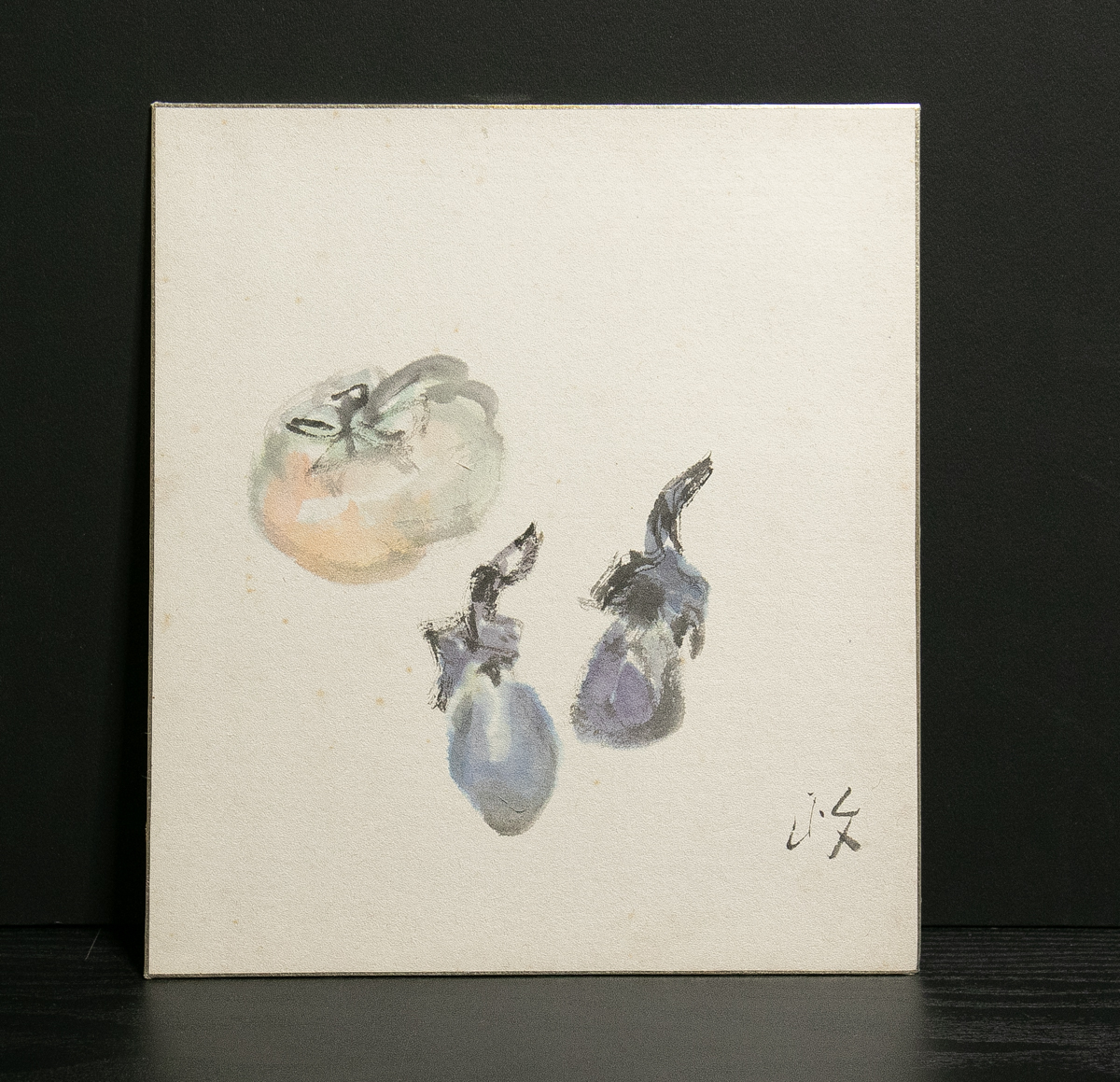 - 色紙ー852 中田政夫 茄子とトマト 岡山の画家 【真作】