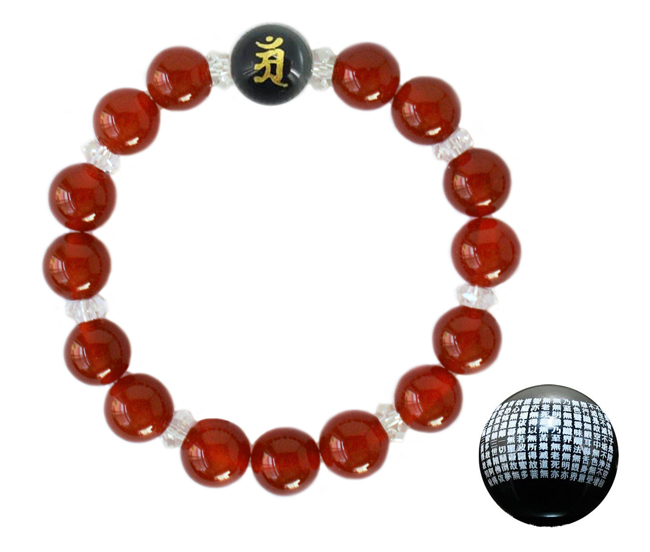 - 般若心経・守りご本尊様「八尊仏梵字・般若心経」 カーネリアンブレスレット【普賢菩薩】18cm