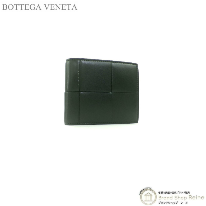 > ボッテガ ヴェネタ (BOTTEGA VENETA) マキシイントレ カセット コンパクト 二つ折り 財布 メンズ 649605 ダークモス(中古)