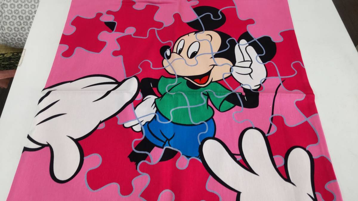 - ミッキー座布団カバー 銘仙判 55cmx59cm 1枚 ちょいきず有 処分 表ミッキーのピンク 裏は無地のピンク