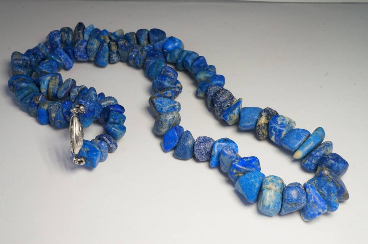 > 希少!昔の在庫なので上質品!藍色が綺麗な上質アフガニスタン産ラピスラズリ(ラピス)原石ロングネックレス107g