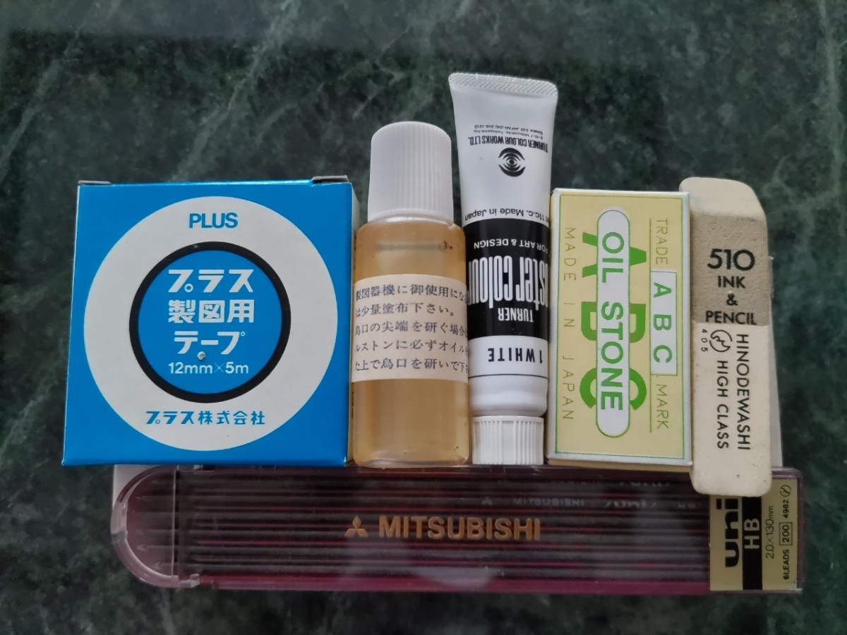 - 最終値下げ! プラス製図用テープ 砂消しゴム 絵の具 芯 オイルストン oil stone ABC MITSUBISHI uni 製図セット 製図用具