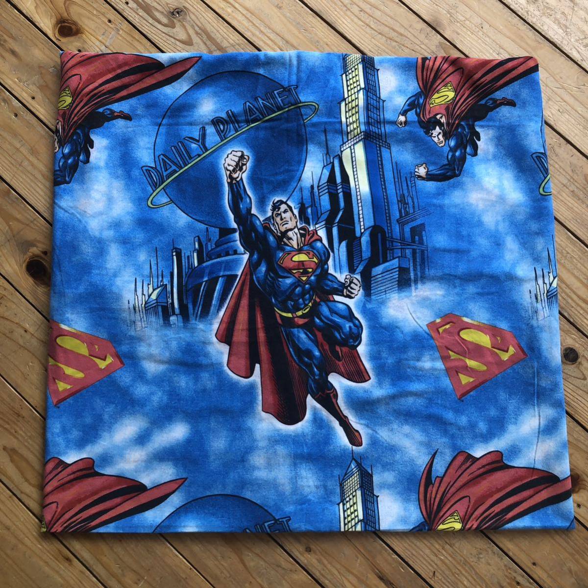 > USAヴィンテージ ベッドシーツ リメイク生地 素材 フラットシーツ スーパーマン DCコミックス アメコミ アメリカ仕入 総柄 B1438