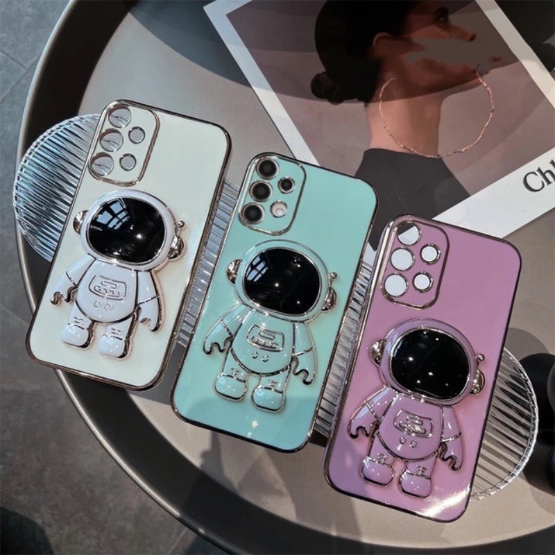 > Samsung Galaxy S22 Plusケース S22+ 6.6インチ スマホケース 金メッキ TPUソフト 背面カバー 宇宙飛行士スタンドタイプ 耐衝撃 おしゃれな