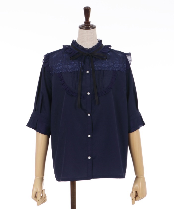 - 270◇チュールレース使いブラウス 紺 ネイビー axes femme アクシーズ ファム CI81X17