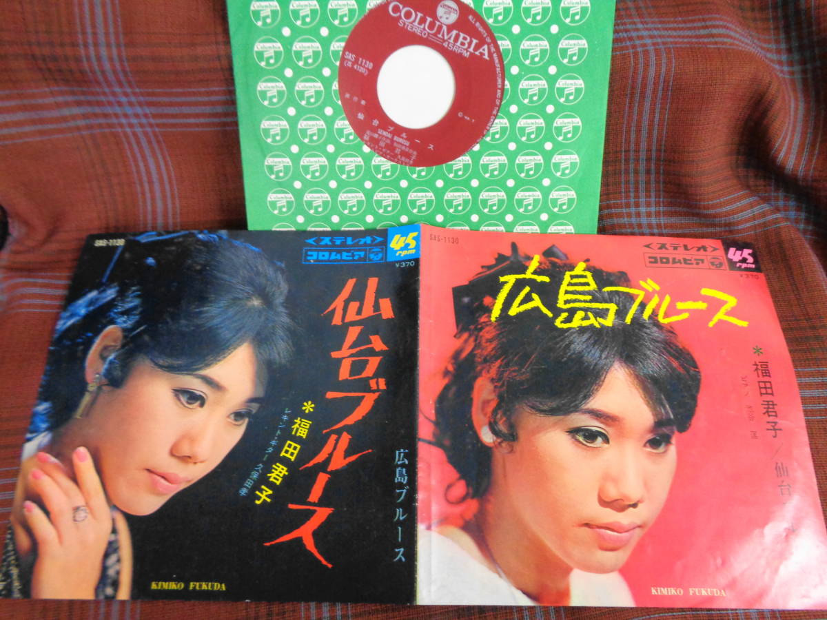 - e#4695◆EP◆ 福田君子 - 仙台ブルース / 広島ブルース ご当地 レア盤 昭和 歌謡 演歌 マイナー SAS-1130