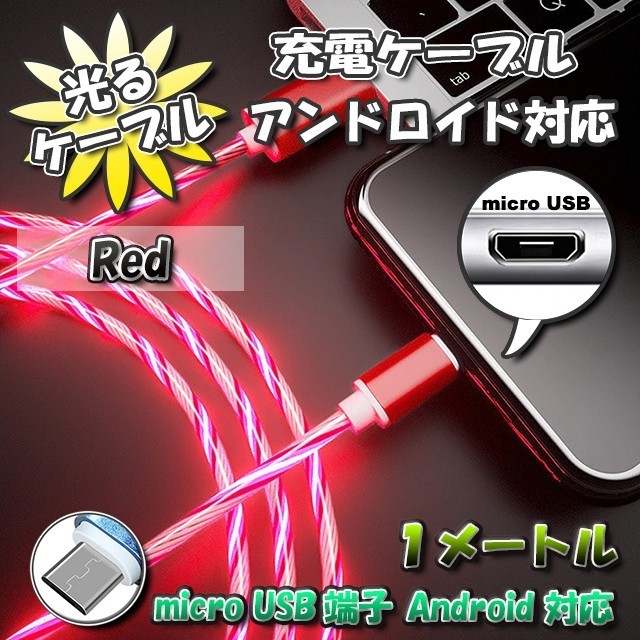 - 【No.2】光るケーブル micro USB Android 用 高速充電 アンドロイド ケーブル 1m 【レッド】x 1本