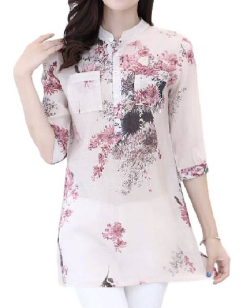 - 〇 シャツ ワンピ ワンピース トップス 花柄 花がら ロングシャツ チュニック 七分袖●送料185円(クリックポスト)
