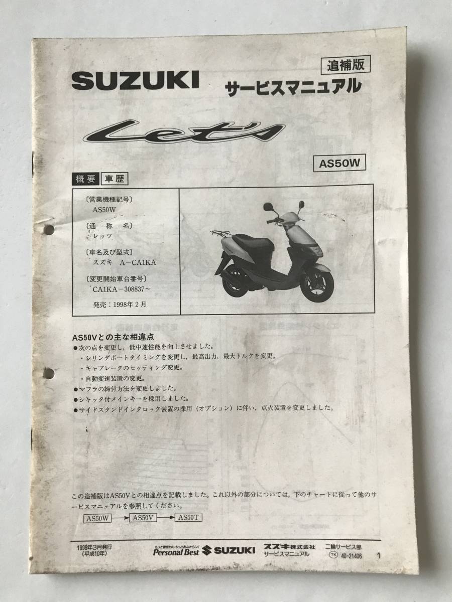 - SUZUKI サービスマニュアル Let’s 追補版 AS50W 1998年3月 TM7210