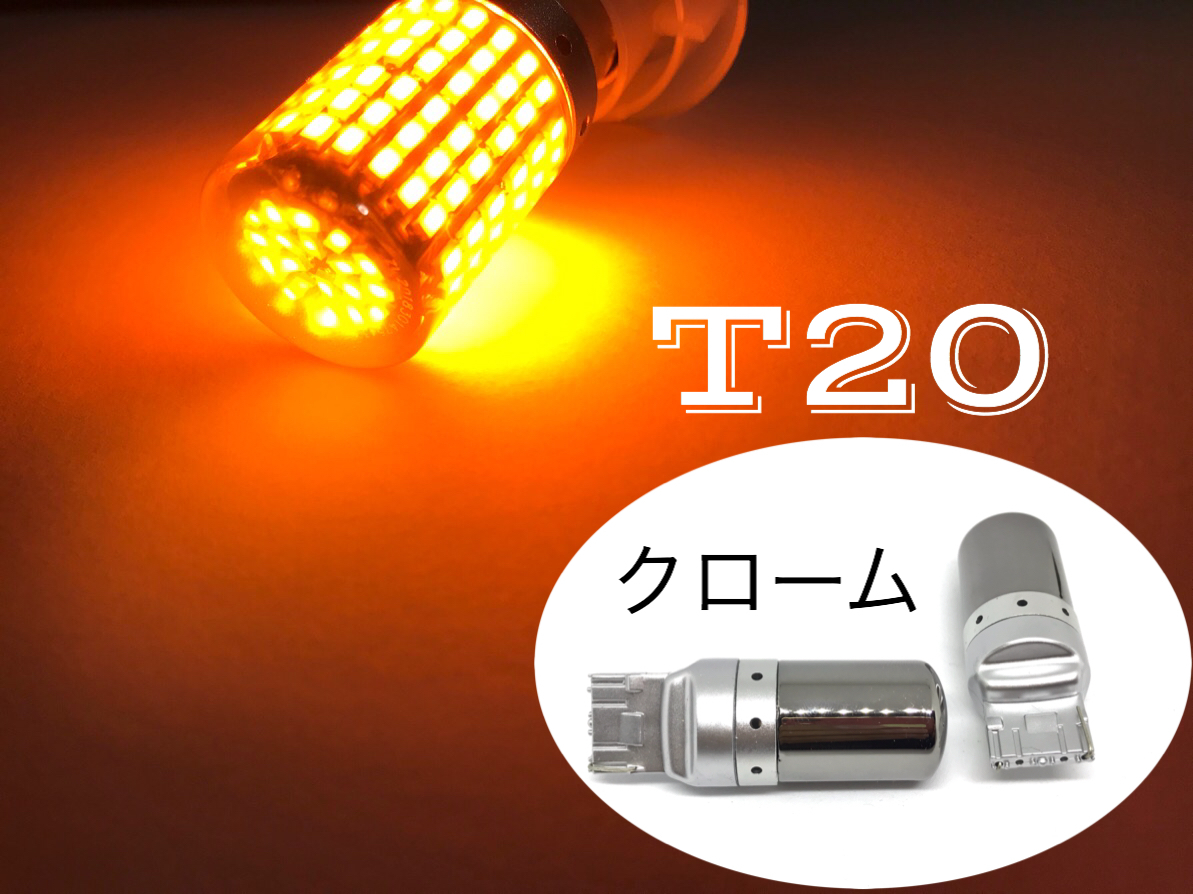 - 2個セット ウインカー T20 LED シングル ステルス バルブ ハイフラ防止 抵抗内蔵 アンバー オレンジ クロームバルブ 送料無料