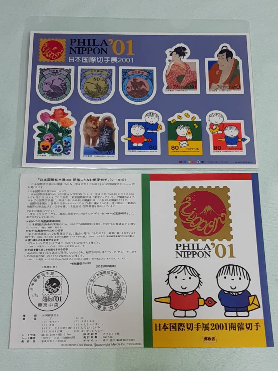 日本国際切手展2001年開催切手 シールシート1枚 解説書1枚です。
