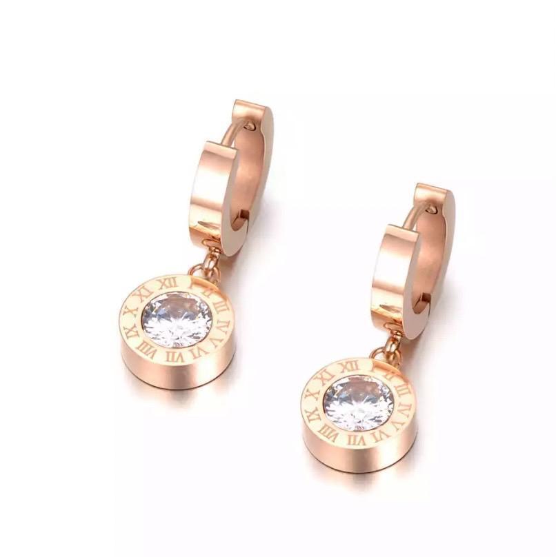 > 427 ローズゴールド ピアス ドレス クロック 韓国 ジュエリー アクセサリー 結婚式 男女兼用 ストーン カジュアル おしゃれ ストリート