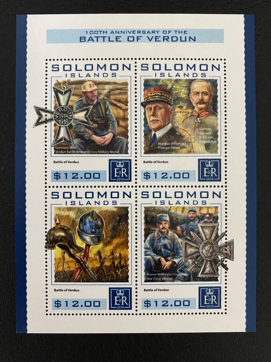 - ソロモン諸島 ヴェルダンの戦い フィリップ・ペタン エーリッヒ・フォン・ファルケンハイン 小型シート1種完 未使用 NH