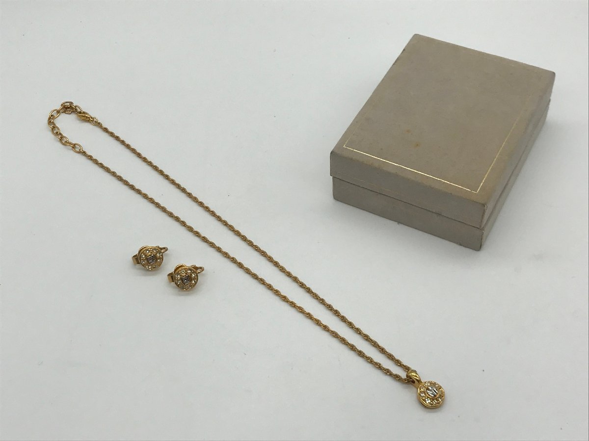 > ■【YS-1】 ニナリッチ NINARICCI ■ NR ロゴ ネックレス イヤリング セット ■ GP 石付き 【同梱可能商品】K■