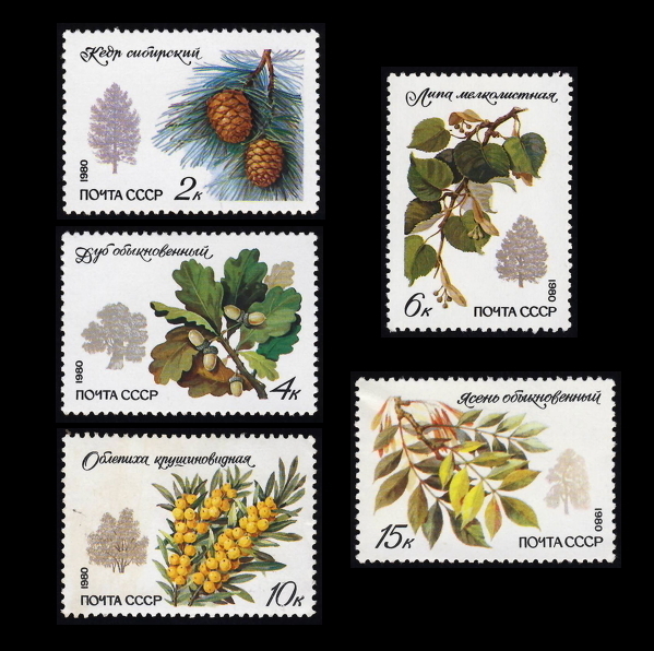 - ■ソビエト切手 1980年 裸子系植物 5種完 / ソ連・ロシア