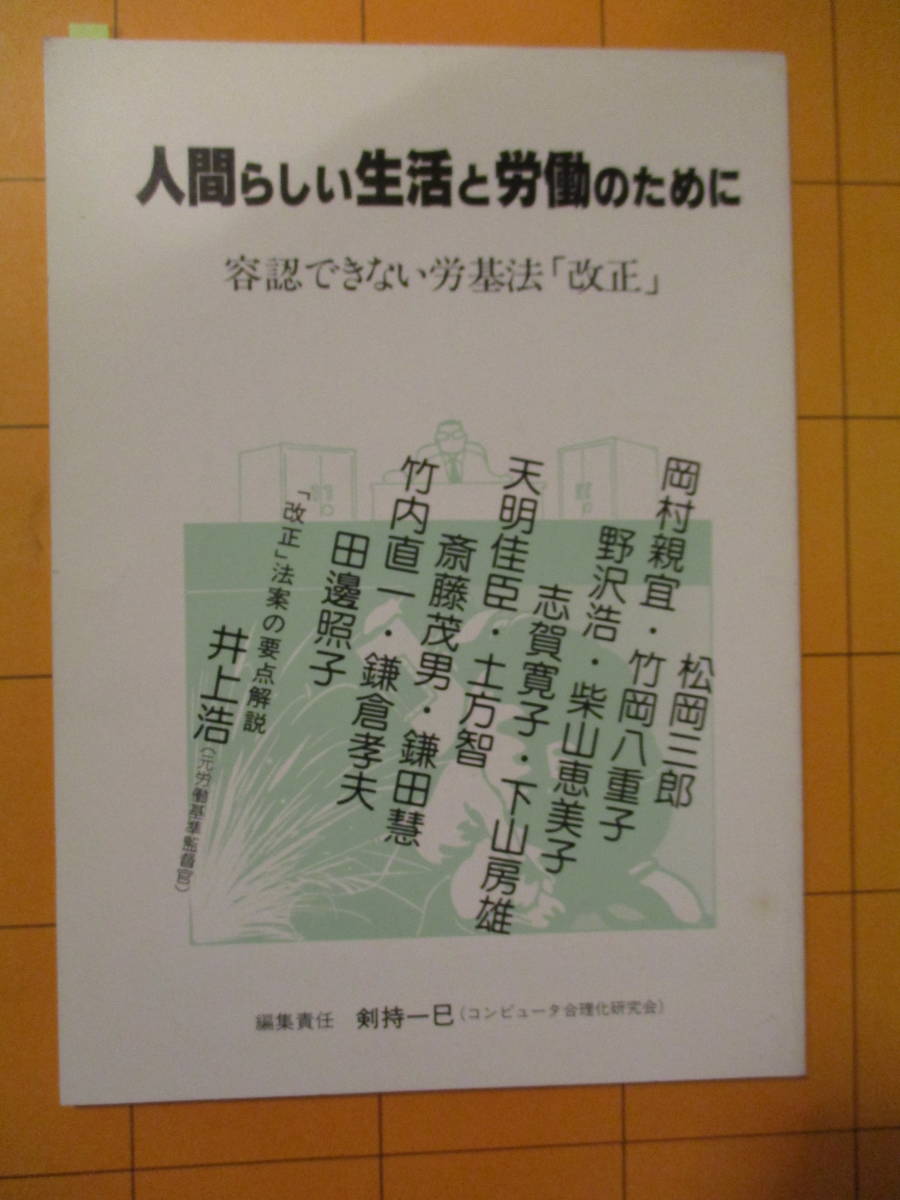 - 剱持一巳編集責任『人間らしい生活と労働のために 容認できない労基法「改正」』